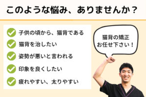 猫背にお悩みの場合は、当院にご相談下さい。