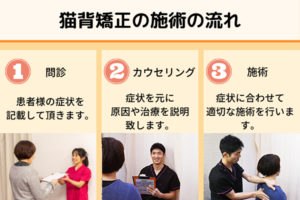 当院では、国家資格者が骨盤・背骨・肩甲骨を矯正し猫背を改善していきます。